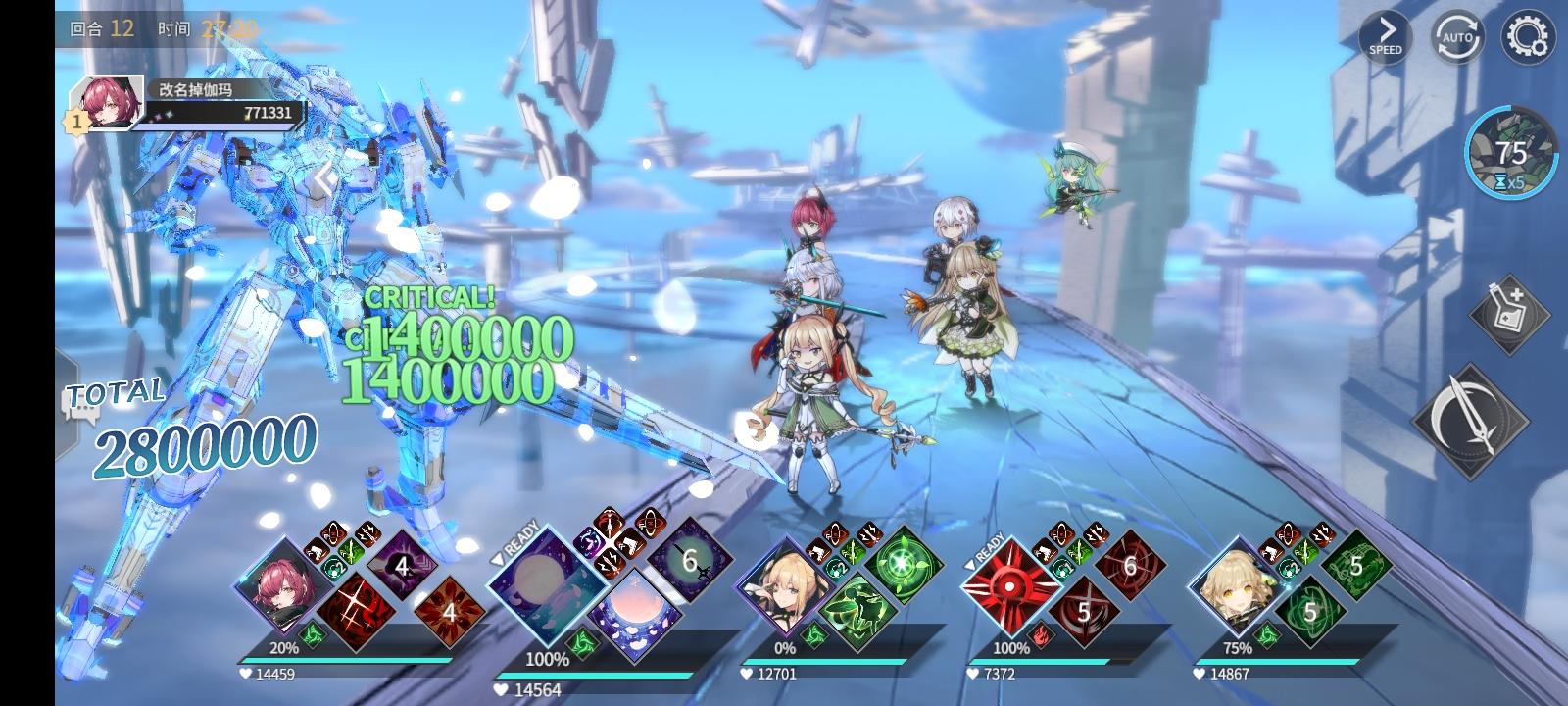 最后就是等输出的cd了,我最后伊莎贝拉大招好了,爱丽丝的没好,怕boss把爱丽丝拍死想等一轮再开伊莎贝拉的大招,boss直接把伊莎贝拉拍了,导致最后170w血没有大招的破釜加成,勉强普攻打掉了。没打掉就没了,这时候boss技能转好了,打我会回血