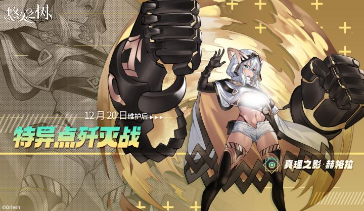 #悠久之树# 特异点歼灭战「真理之影·赫格拉」即将开放!◇开放时间◇12月20日 维护后常驻◇开放条件◇真源难度 完成 主线剧情 境界篇 story04 千钧一发神使难度 完成 终焉之影封印战多人战光属性特异点歼灭战「真理之影·赫格拉」[真源]即将开放,通过挑战真理之影·赫格拉将可获得「审判」与「正义」的奥秘。用其熔炼的奥秘卡片除了能提升队伍内全体光属性角色的能力,似乎还有专门针对探求