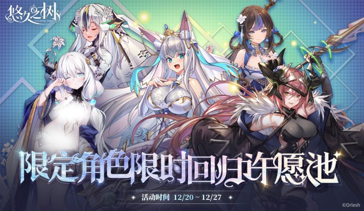 #悠久之树# 【限时复刻】限定角色限时回归许愿池即将开启~!◇许愿时间◇12月20日 维护后 – 12月27日 14:00◇活动说明◇活动期间,限定角色回归许愿池限时开放!SSR角色[翠露的薰风使]春分、[实干派的才女]盈缺、[异端的审判者]玛丽斯、[狂血的易命者]甘遂、[明睿的贵客]盖乌斯、[银之花的淑女]瓦沙克、[九霄雷动苍龙起]惊蛰、[娇小的繁星魔女]妮菲亚、[葛莫瑞首领]古蕾雅、[