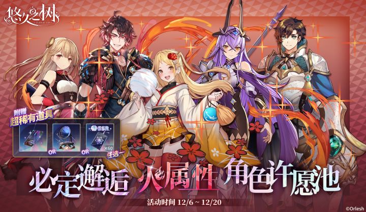 #悠久之树# 必定邂逅火属性SSR角色许愿池即将开启~!◇许愿时间◇12月6日 维护后 – 12月20日 14:00◇活动说明◇活动期间,必定邂逅火属性SSR角色许愿池限时开放!在该许愿池内许愿时,10次许愿内必定邂逅至少1名火属性SSR稀有度角色!◇注意事项◇1. 必定邂逅火属性SSR角色许愿池内可邂逅的角色仅包含2023年10月25日前在游戏内登场的非限定角色,详细列表请查看许愿池