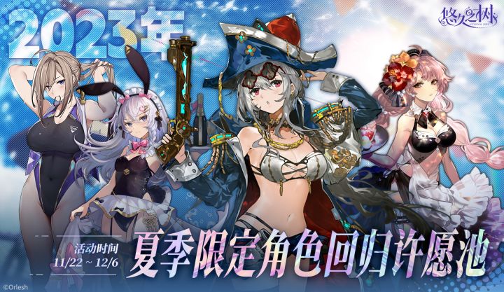 【限时复刻】2023年夏季限定角色限时回归许愿池即将开启~!◇许愿时间◇11月22日 维护后 – 12月6日 维护前◇活动说明◇活动期间,2023年夏季限定角色回归许愿池限时开放!SSR角色[倾夏瑰姿]罗莎莉、[跃浪女杰]英格丽德、[夏色的兔女仆]欧内丝婷、[贤仆的假日侍奉]格温德琳限时回归,且在本许愿池内邂逅概率大幅提升!※更多许愿池详情请参见游戏内相关公告。