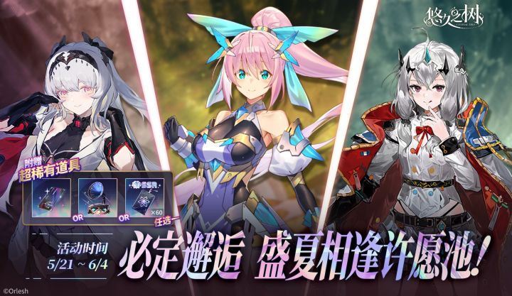 ◇许愿时间◇5月21日 维护后 - 6月4日 10:00◇活动说明◇活动期间,盛夏相逢特别自选UP许愿池限时开放!在该许愿池内许愿时,探求者大人可以从「碧蓝世界的守护者」格拉夏及此前过往所有SSR角色中选择3位,10次许愿内必定邂逅所选3名角色中的1名!且可额外可获赠限定礼物【奇珍秘宝自选箱Ⅰ*1】,使用后可自选获得【极致的证明*1】【箱庭奏者*1】【万灵许愿签*60】中的任意一种礼物!◇