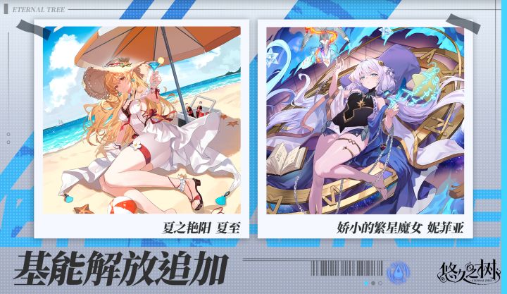 ◇追加时间◇4月9日 维护后本次开放角色为水属性SSR稀有度角色「夏之艳阳·夏至」「娇小的繁星魔女·妮菲亚」。将角色同调等级提升至Ⅴ级并进行基能解放后,角色等级上限将提升为80级,并开放更多基能强化内容,强化至80级还将解锁全新基能解放立绘!心愿币商店将追加两位角色的许愿签兑换,且4月9日 维护后 – 4月23日 10:00,商会内将限时上架以上两位角色的许愿签同调礼包,请探求者们不要错过~