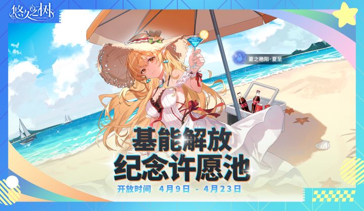 ◇许愿时间◇4月9日 维护后 – 4月23日 10:00◇活动说明◇活动期间,基能解放纪念许愿池·夏至即将开启!「夏之艳阳·夏至」限时回归,且邂逅概率大幅提升!在该愿池内许愿累计达到120次时,可直接邂逅「夏之艳阳·夏至」!该许愿池可以使用臻选角色许愿套组、星导之愿、星导之愿·套组、绚晶石进行许愿。许愿池开放期间,探求者大人可通过商会以优惠价格购买臻选角色许愿套组!许愿池结束后,臻选角