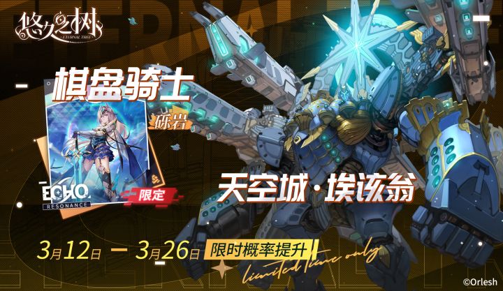 ◇许愿时间◇3月12日 维护后 – 3月26日 10:00活动期间,新回响&虚数体UP许愿池限时开放,新诸神祝福5期系列限定地属性SSR回响「砾岩·棋盘骑士」、新英杰觉醒系列地属性虚数体「天空城·埃该翁」加入许愿池,且在本许愿池内的凝聚概率大幅提升!在本许愿池内累计许愿次数达到80次时,可领取UP回响「砾岩·棋盘骑士」×1!【特别提醒】:活动结束后,该许愿池的UP回响「砾岩·棋盘骑士」不会