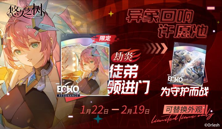「福启烟华」异象回响许愿池即将开启!◇许愿时间◇1月22日 维护后 ~ 2月12日 10:00◇活动说明◇活动期间,全新异象回响「徒弟领进门」登场,且凝聚概率大幅提升!异象回响「徒弟领进门」拥有与诸神祝福2期回响「为守护而战」完全一致的性能,并可在未来版本将其作为回响「为守护而战」的外观使用。获得该回响后,探求者大人还可通过成就界面解锁1个专属头像!在本许愿池内许愿累计达到80次时,可