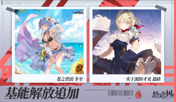 #悠久之树# 基能解放角色追加!◇追加时间◇1月15日 维护后本次开放角色为火属性SSR稀有度角色「苍之碧浪·冬至」「实干派的才女·盈缺」。将角色同调等级提升至Ⅴ级并进行基能解放后,角色等级上限将提升为80级,并开放更多基能强化内容,强化至80级还将解锁全新基能解放立绘!心愿币商店将追加两位角色的许愿签兑换,且1月15日 维护后 – 1月29日 10:00,商会内将限时上架以上两位角色的许