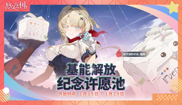 #悠久之树# 基能解放纪念许愿池·盈缺即将开启!◇许愿时间◇1月15日 维护后 – 1月29日 10:00◇活动说明◇活动期间,基能解放纪念许愿池·盈缺即将开启!「实干派的才女·盈缺」限时回归,且邂逅概率大幅提升!在该愿池内许愿累计达到120次时,可直接邂逅「实干派的才女·盈缺」!该许愿池可以使用臻选角色许愿套组、星导之愿、星导之愿·套组、绚晶石进行许愿。许愿池开放期间,探求者大人可通