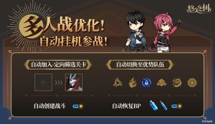 走过路过千万不要错过!悠久之树最省肝最自动的版本来啦!还在房间苦苦等候【天命人】?还是已经准备后遇上了不准备的【好兄弟】?在继千日版本大改参战机制后,国庆版本的树树又有了新的底层代码突破啦!在上一个版本中,探求者大人们虽然能中途参战,但还存在着只能参加一场战斗等不够便利的问题!于是,在这次的新版本更新中,格拉拉们为探求者大人们带来了全新的自动参战系统!探求者大人们可以预先设置要自动参战的属性