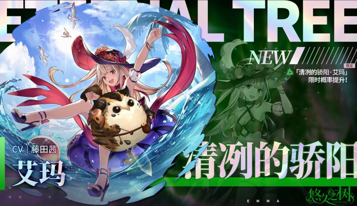 #悠久之树 【限定许愿】「清冽的骄阳·艾玛」限时概率提升~!◇许愿时间◇6月19日 维护后 – 7月3日 14:00活动期间,全新风属性限定SSR角色「清冽的骄阳·艾玛」限时UP许愿池开放,且在本许愿池内邂逅概率大幅提升!【特别提醒】:活动结束后,「清冽的骄阳·艾玛」不会加入常驻许愿池「特莱威许愿池」。※更多许愿池详情请参见游戏内相关公告。