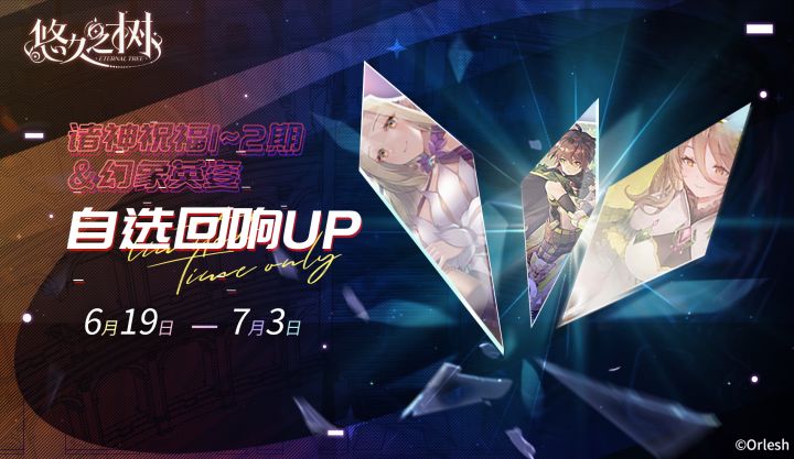 #悠久之树 【限时许愿】「自选回响UP」许愿池限时返场~!◇许愿时间◇6月19日 维护后 – 7月3日 14:00能够自定义概率提升回响的回响许愿池限时返场!探求者大人们可在诸神祝福1期、诸神祝福2期、幻象英姿系列共计18张回响中自选心仪的1张作为UP回响,该回响将和迄今为止所有的常驻回响、虚数体一起加入该许愿池供探求者大人们抽选,且该回响凝聚概率大幅提升!◇详细规则◇1.