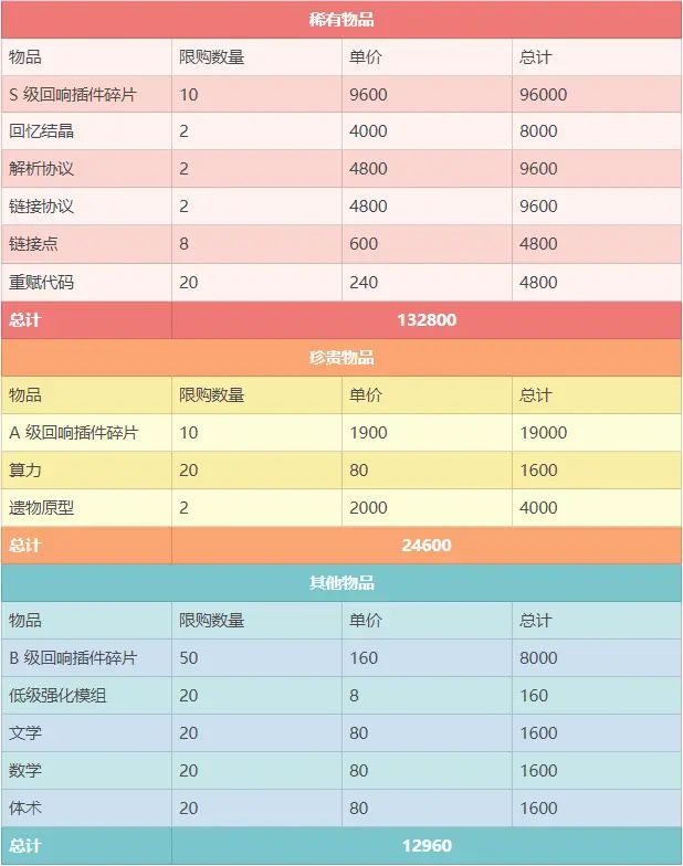 一曲歌舞伴雨蝶,朝花轻灵梦无边。大家好,我是梦の雨蝶。九月份的到来,记忆商店也会更新。上个月因为是中途开服,匆匆忙忙所以没有搬空(还剩下五个 S 级碎片没弄)。九月份打算好好规划一下,看看怎么弄会轻松一点。更新日志2020/09/08 月祭活动试炼行动 扫荡收益提高 60体力/4320记忆记忆商店物资汇总兑换顺序我个人比较脸黑,贸易商店刷不出来回忆结晶。回忆结晶 > 两种协议 >