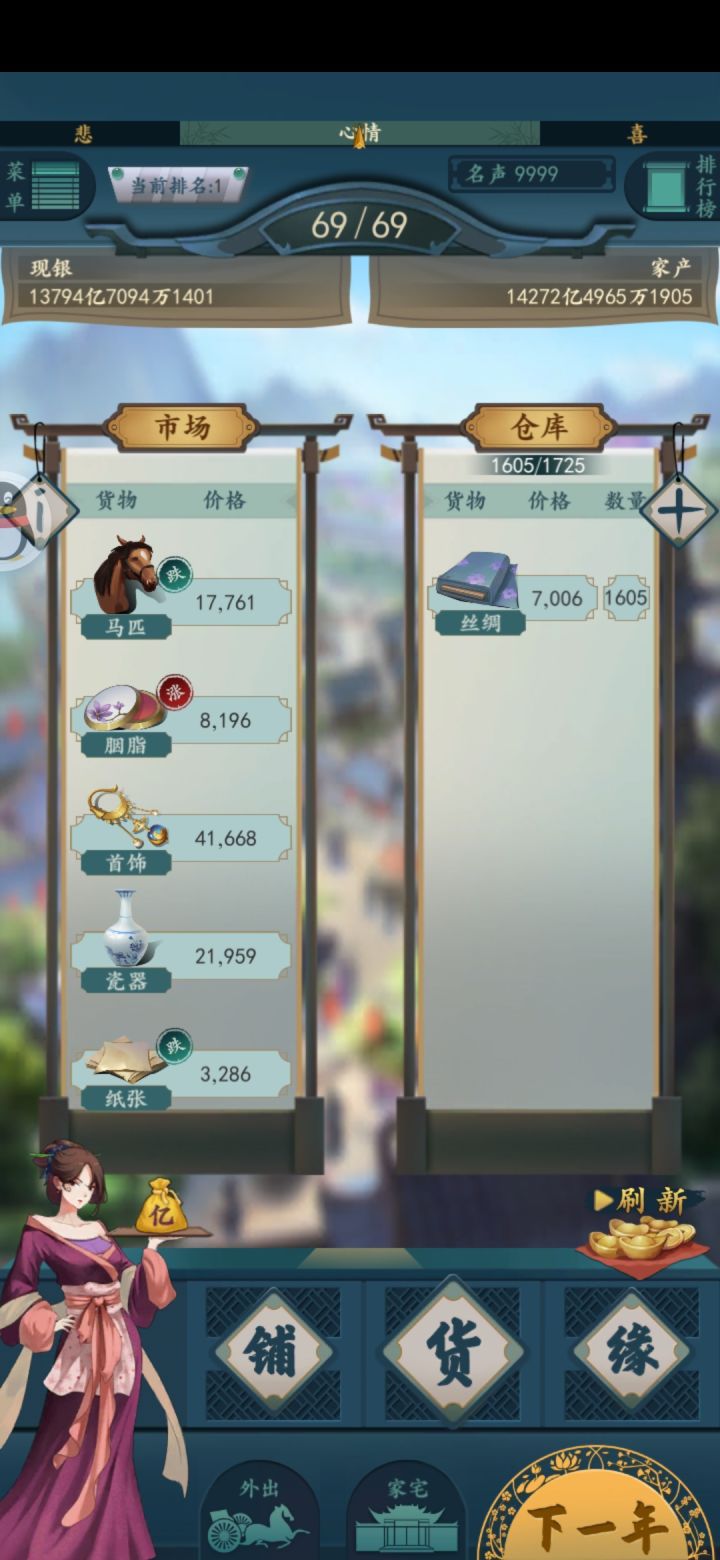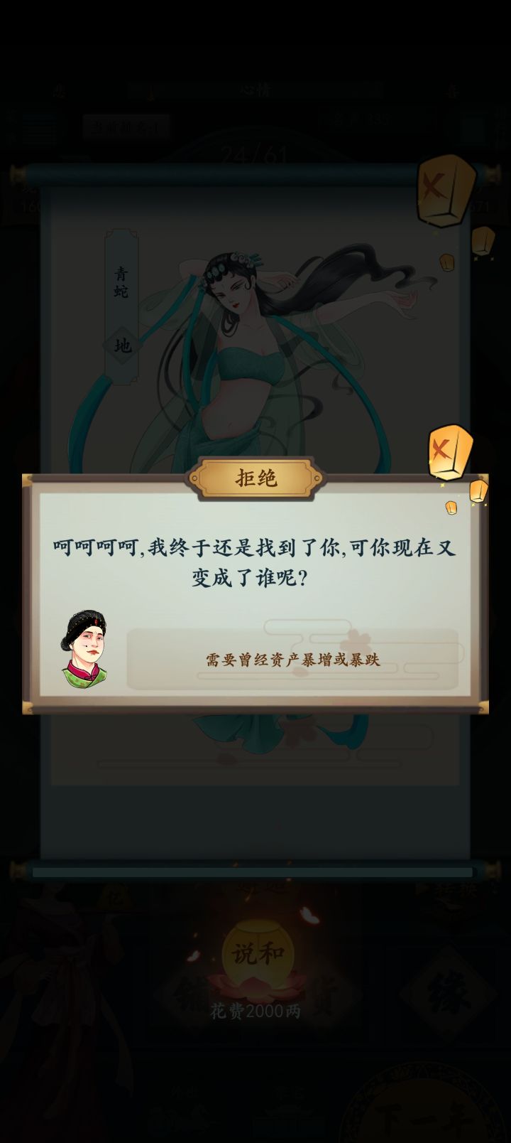 玩了将近一个月终于把在世财神的成就给完成了,这把运气太好了,中间广告也没看,顺风顺水,除了开局没刷出花魁来其他的很顺,也是有史以来资产最多的一把.有什么不懂得可以问我,我可以在评论区略微解答一二