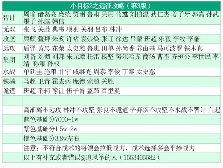 小目标2远征攻略补充:1.点个赞再走趴~2.部分武将有双属性3.辛弃疾攻坚战力仅有8000-1.3w,猜测还有主属性4.白起不攻坚!以上内容全部是小目标2官方群水友一个个试出来的嘻嘻,有补充的就滴滴我噢