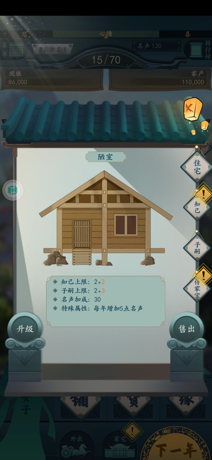 要说知己的话,我感觉前期作用最大的是货郎还有堂主大哥,一个每年加五个背包一个30岁前每年给你15万。嗯接下来就是我一些个人经验前期致富屯点米。屯个50袋左右,等涨价在卖,运气好的话20岁以前百万不是梦,然后就是不要把背包屯满。前期留个2.30个背包买那些降价的,但是我玩了很久,有些降价商品比普通的时候贵些。这种就要你多玩玩。大部分价格心里有个谱毕竟帖子告诉你什么最低价到游戏商品多了你还不是记不
