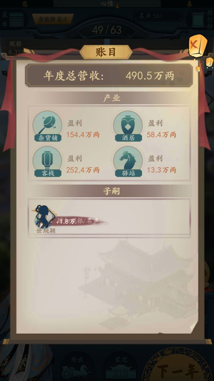 知己调整了机率莫名其妙多了个鸡肋宴席,还没详细公告说明,并且差价与游戏进度不平衡,实为鸡肋。还有风险机制,你要不就做好一点,要不就把风险删了,什么东西,我一开始还怀疑我运气不好,做了10组测试。14坏账率加满商子嗣,平均坏账次,倒闭3次,最高倒闭5次,坏账6次。40坏账率以上的数据和14坏账率的数据差不多,所以这个坏账率有吊用?你要不出个具体的详细公告,要不就删了,做好点,这样搞什么意思