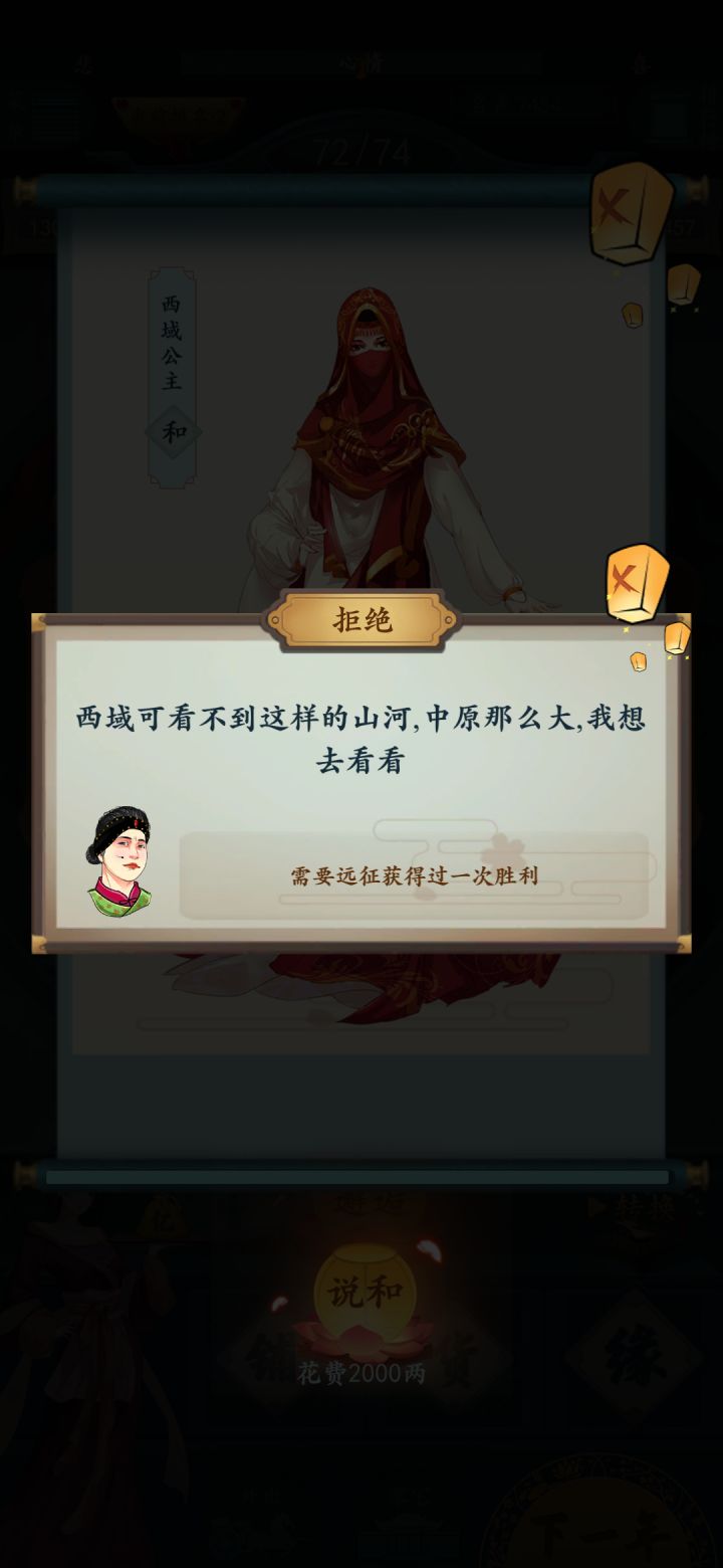 更新1.4.7后,西域公主娶不了,开了西域钱庄,远征胜利也娶不了。
