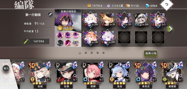 因为带了一个200级的妮娜还有一个惠惠,其实有没有无所谓所以总体战力可以更低一点,主力还是妮可拉美雪。本来一直带的神橙,但是改变思路往特殊buff上靠了以后换成了潘神其次这是个赌狗流。开局一号位下潘神攻击御神梦,出暴击可以直接拉残,练度高点能直接拉死应该。重点:如果运气好的话对面会在你潘开大之前在六号位下妮可拉,这样通过溅射会直接把妮可拉也带残。然后我们也下妮可拉,可以稳定带走御神梦跟一个妮