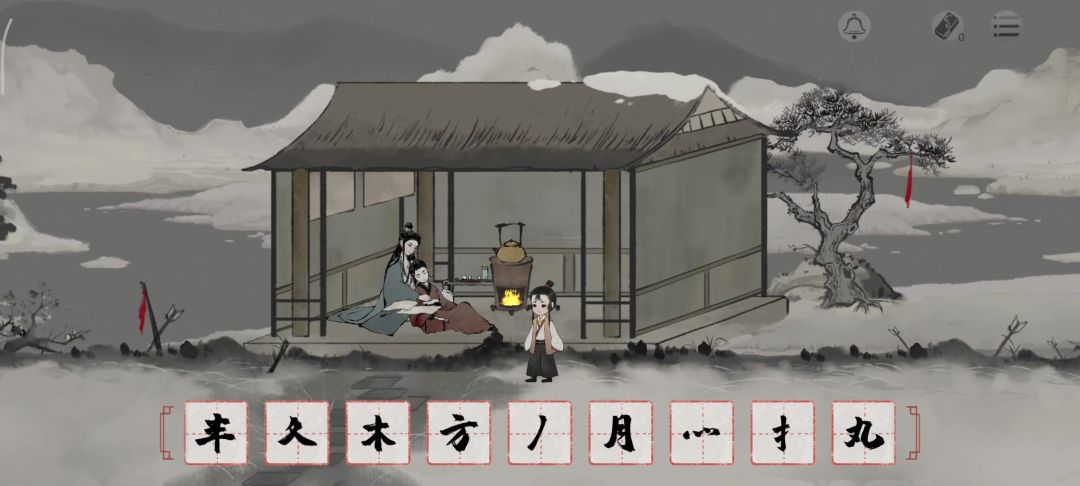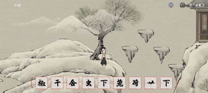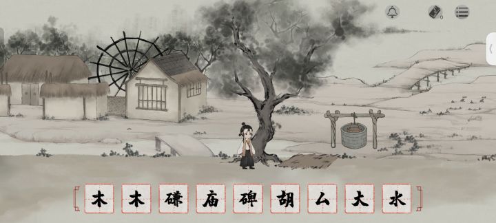 亭子里的“羽” 琴台左侧石头 石头放在琴后面断石上 琴右侧有“碗”和字 在水池周围找字和桶,桶装水,水浇树苗在最右侧,得到“杏” 碗和两个拆开的杏,组成宫 乐谱: 角商角商,徵商宫羽