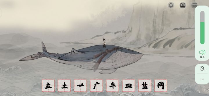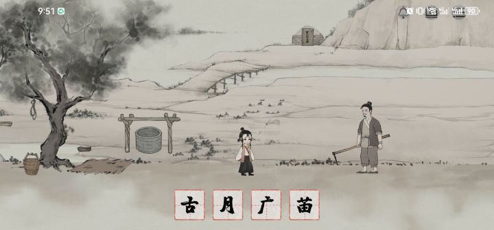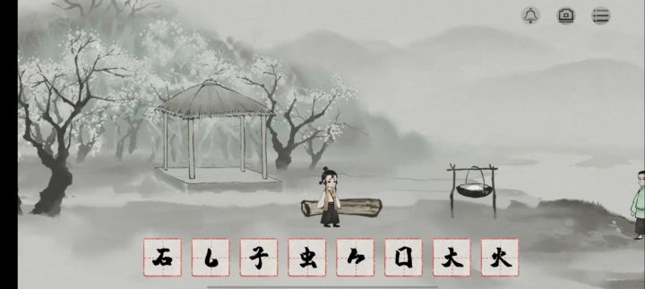 把【磨】拆成【磨】和【石】,再拆【麻】成【林】和【广】【石】+【广】→【矿】拆【林】成两个【木】两个【木】和【碗】放天平一边,【矿】放天平另一边然后天平就平衡了,过桥后组字【钥】开门就行