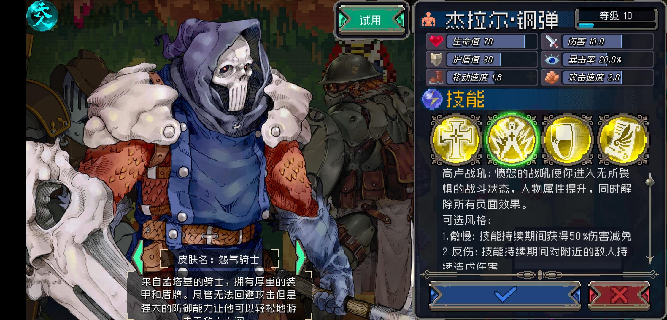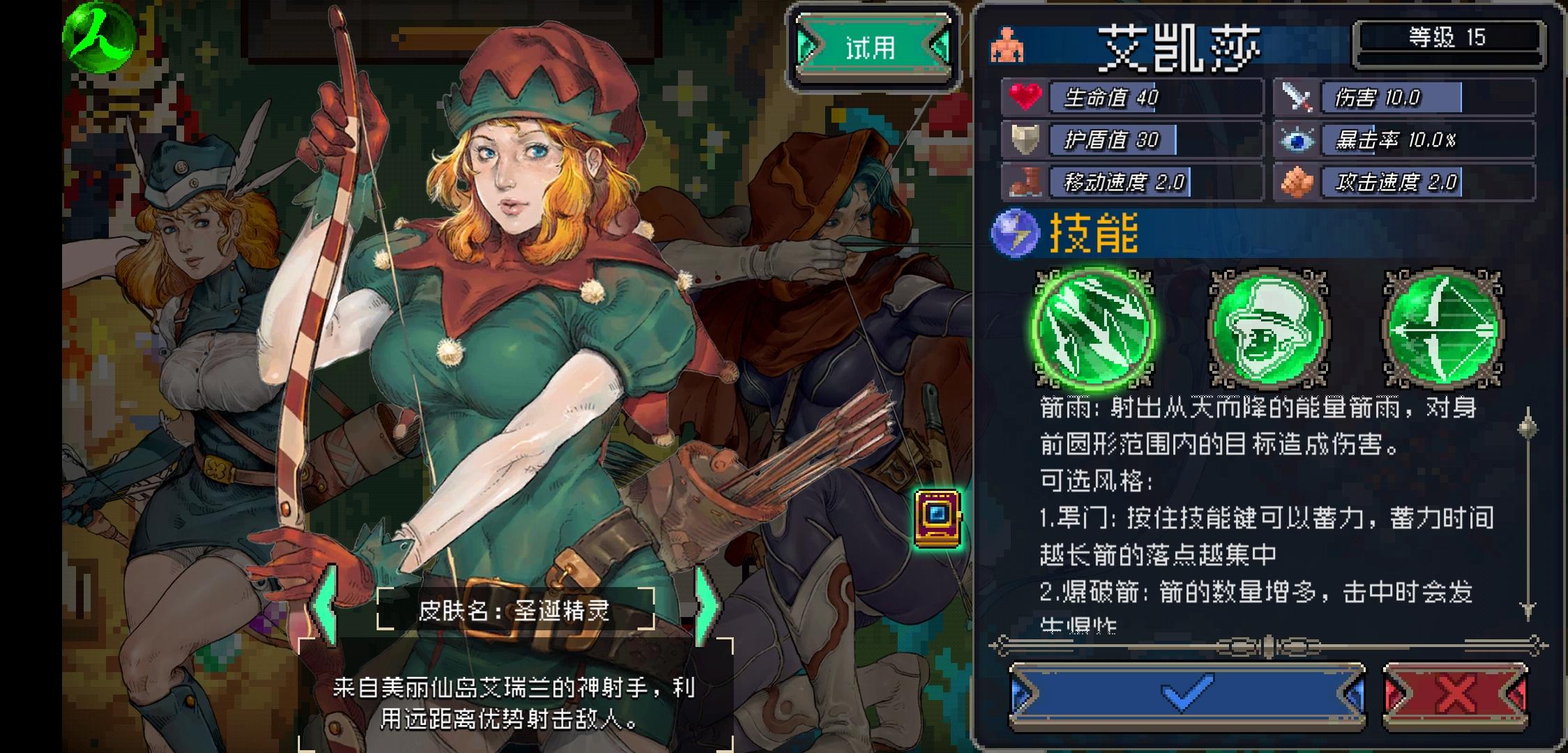 第一次拿速射打还差几管血被反杀了,第二次换了箭雨发现简单多了,攻击方式单一,基本就是位移然后戳,控。斜线闪避基本可以躲得过去