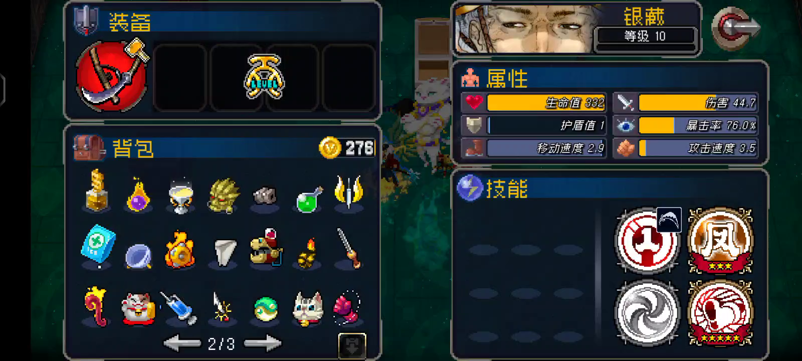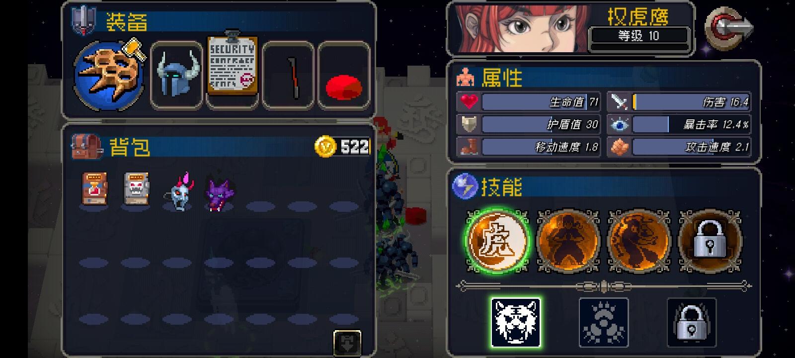 初始角色宠物流派推荐,构成很简单 有兽六道最好,没有也没关系,只需要任意三个召唤物加一个共享机即可,不知道是不是bug,共享机对于某些道具是三倍计算,我那个红色方块(非战斗状态下吃到血药会变成召唤物)居然变成了三个,简单方便,成型后只需要一直翻滚便可,缺点是1.每次到新关卡会重置红色方块的变形,导致打阿修罗的时候少了三只怪,所以虽然红色方块三倍计算,但还是建议背包里再带个其他召唤物替换。2.遇到有杀怪造成范围伤害的boss时候会死的很惨,但这种boss很少所以可以放心用