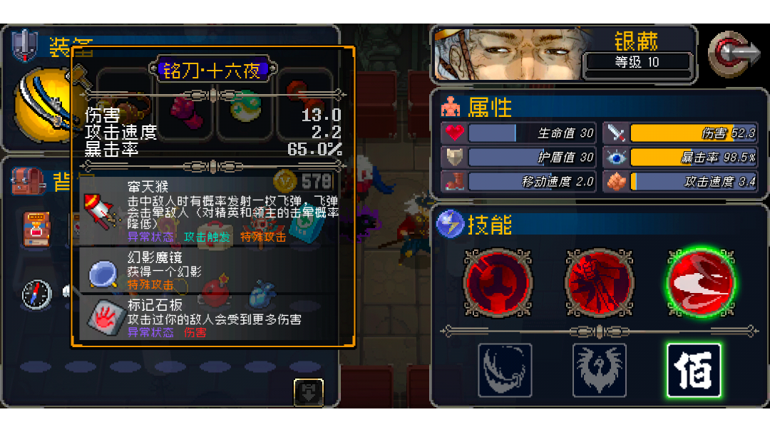 真幻境原来咋玩都过不了,最近摸索出一套能力搭配基本稳过真幻境,玩法是,史莱姆戒指加一些攻击触发和死亡触发的道具(纽扣炸弹,圣杯,窜天猴,圣十字,祭祀刀,太阴圣杯,最后的祭品,云杖,碎骨刀),和连锁道具(雷精灵,灵魂拷链,猫咪),最好能合成个达摩克利斯之剑。史莱姆戒指是必备道具,其他的能凑个两三样就行。(备注:获得史莱姆戒指的方法:占卜出负面,或者占卜够了直接选负面卷轴,基本能保证每把必定遇到史莱姆戒指,因为负面道具比较少,能在商店或者道具房里遇到的负面道具也就那4样,把每样负面道具都买下来也能提高遇到史莱姆戒指的概率)增加攻击频率,用打群架的方式打BOSS。