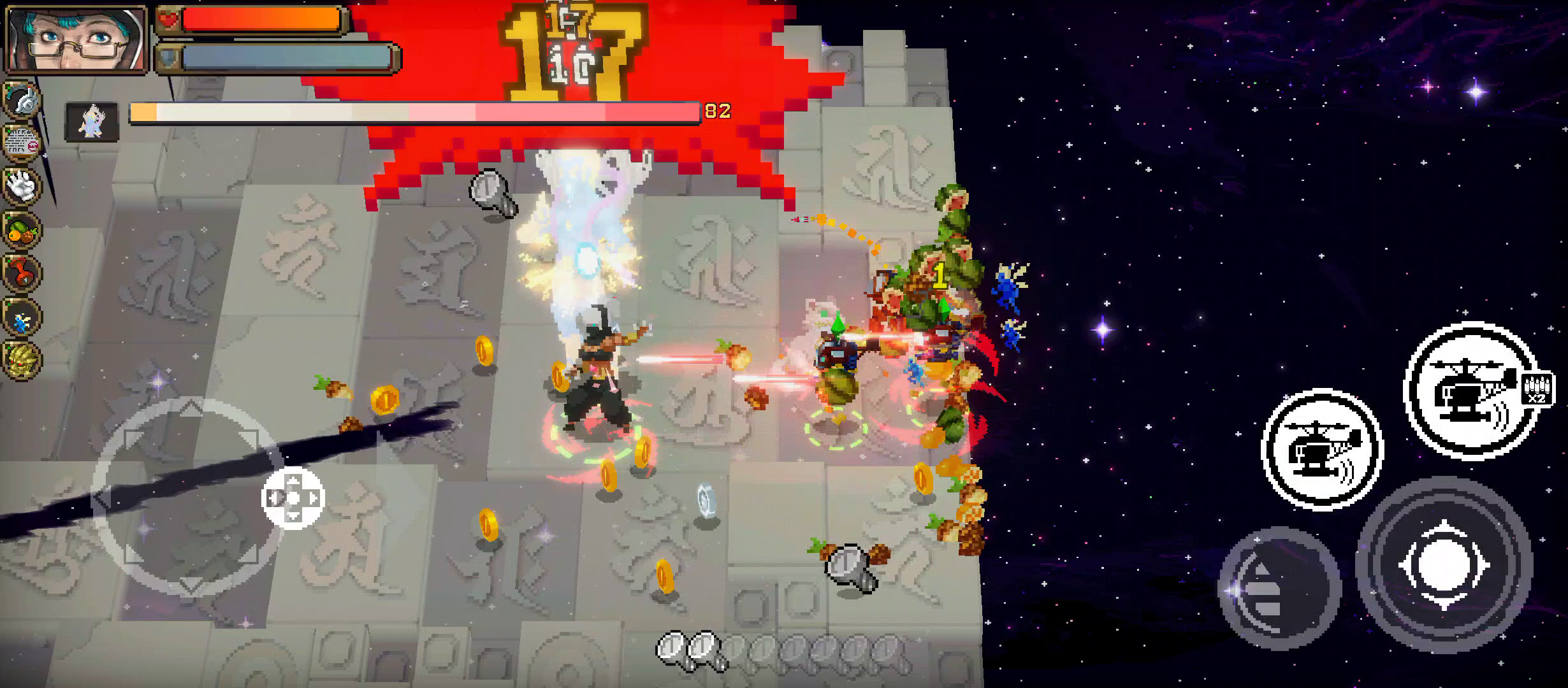 核心装:哑铃 哑铃会降低移速,同时增加闪避时间,导致无敌时间变长,因此可以达到无限免伤。