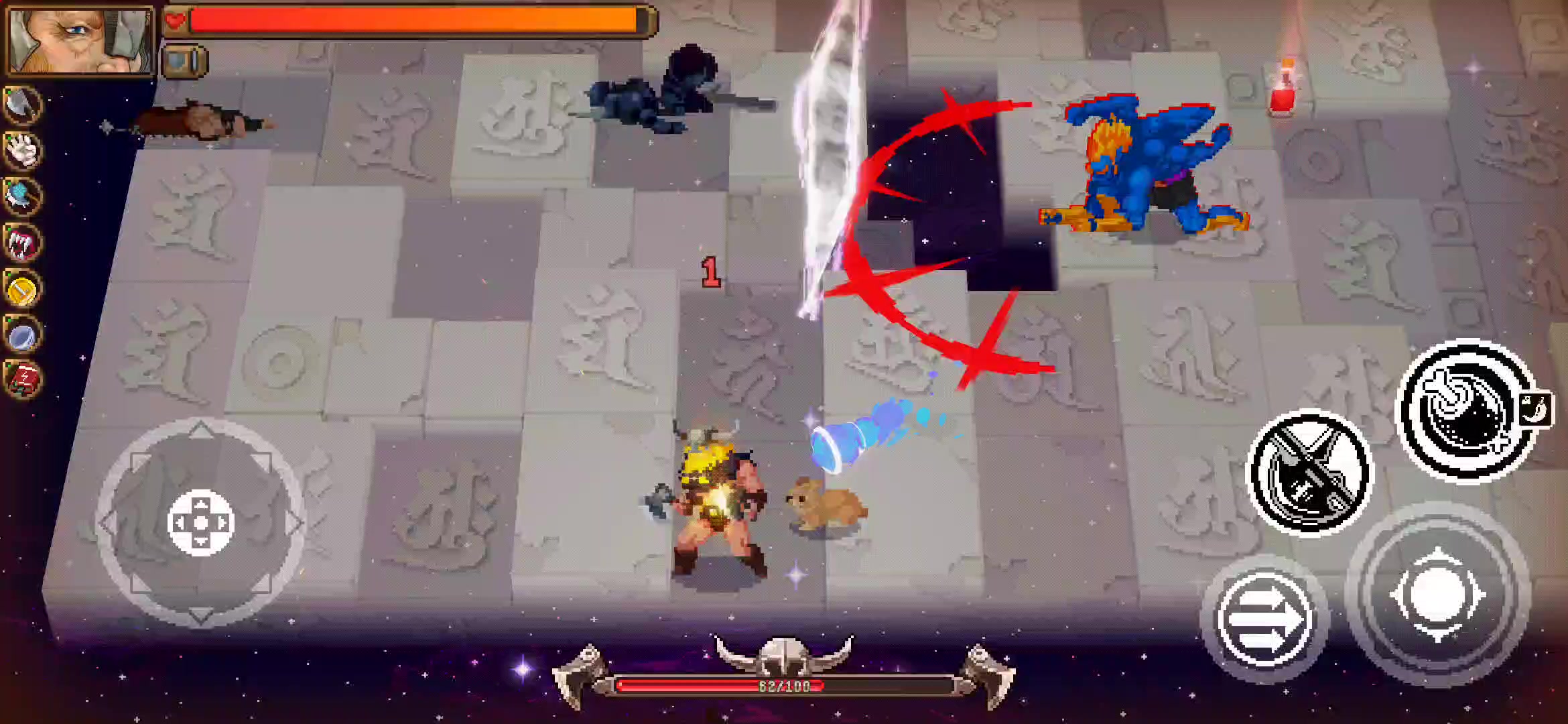 3,这个的话,从只说平A的方向出发,本人建议各位在使用该角色时要么顺着怪砍,砍一刀换一个;要么砍几刀,在冲锋过头后使用方向操纵杆把方向转回来继续砍(第二个方法多针对于需要趁早解决的小怪以及boss)