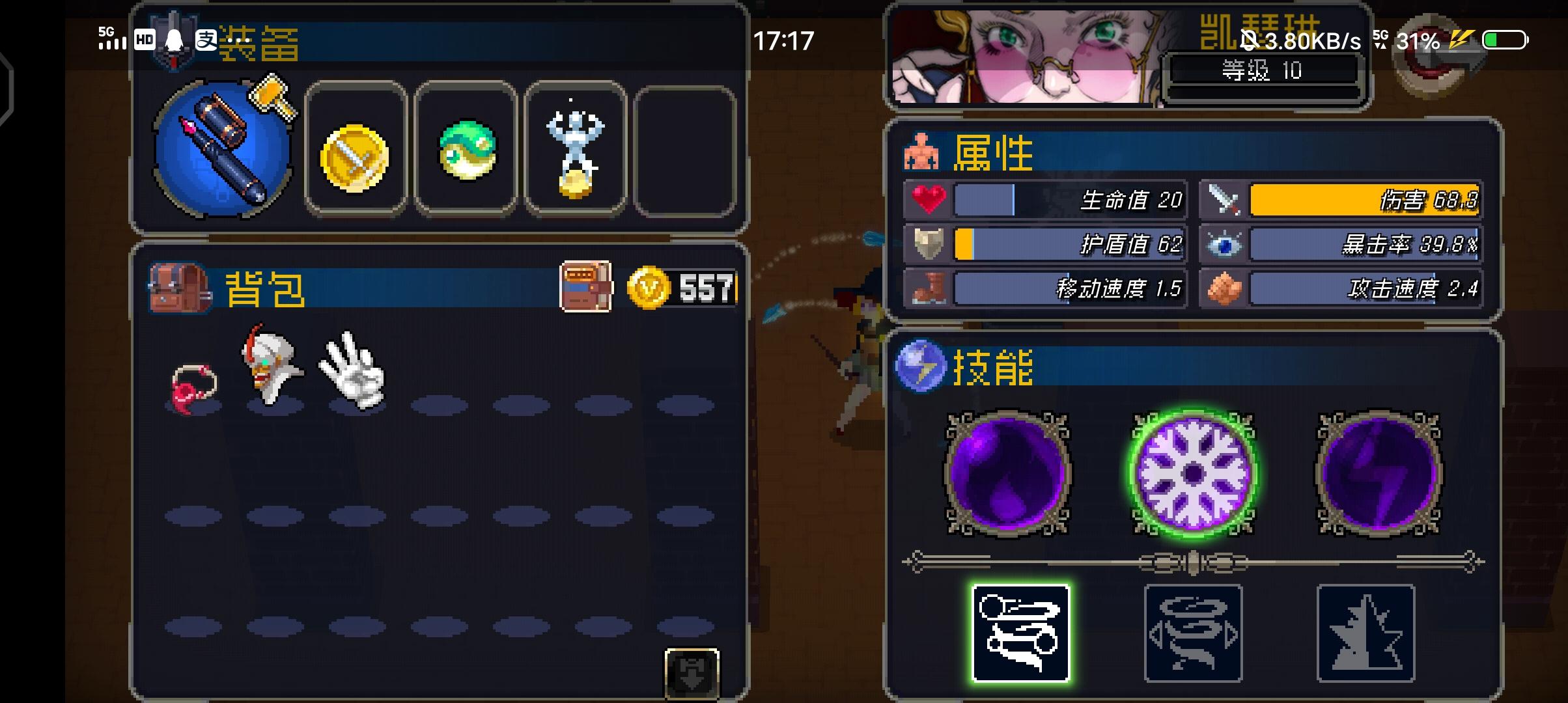 传说难度 副件:吸血+雷电+眩晕+攻速和暴走 只要我攻击够快,回血就比出血快,硬扛各种小怪