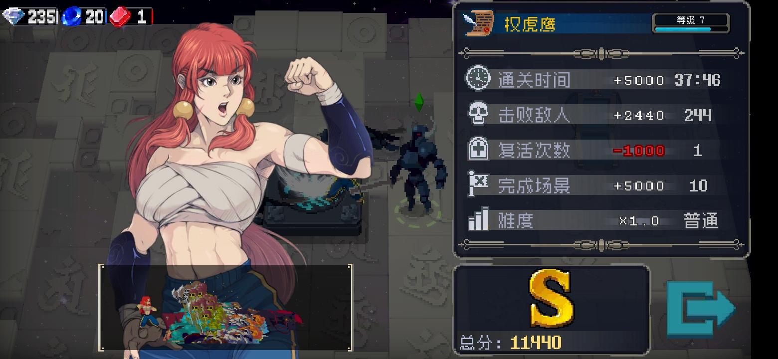 通关了铁子们最后的这个Boss打有一定的技巧如果有那个血量越低伤害越高的那个技能一定要选择超好用