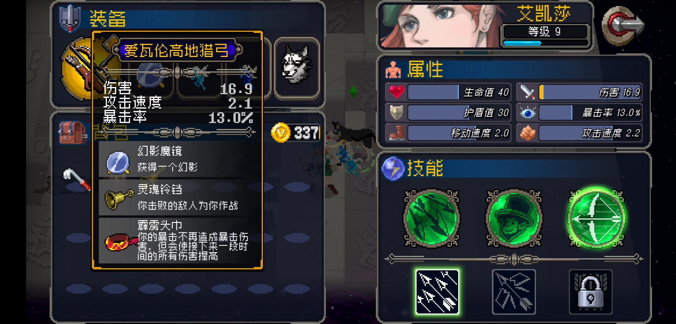 双连射矢前期带风格二清兵,道具最核心幻影镜,幻影镜不要嫌多,有就拿,两个最好,然后拿攻击特效控制的道具,冰精灵和哈士奇最好,打boss记得切换风格一,有幻影镜和冰精灵很好打boss,连竹林图都是横扫,打修罗就躲一下大技能防止被秒,很快乐,如图