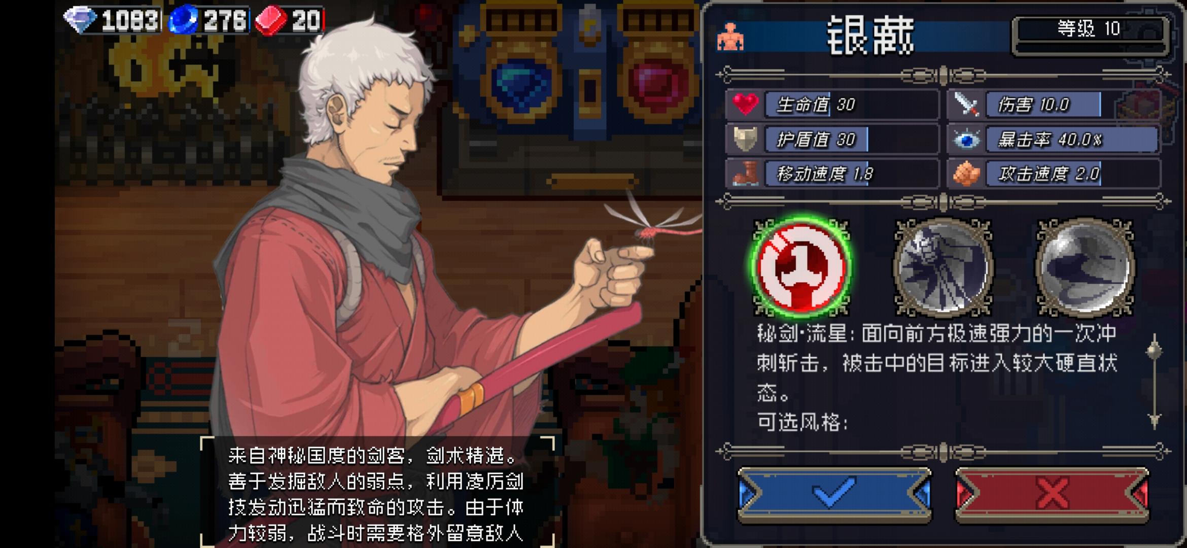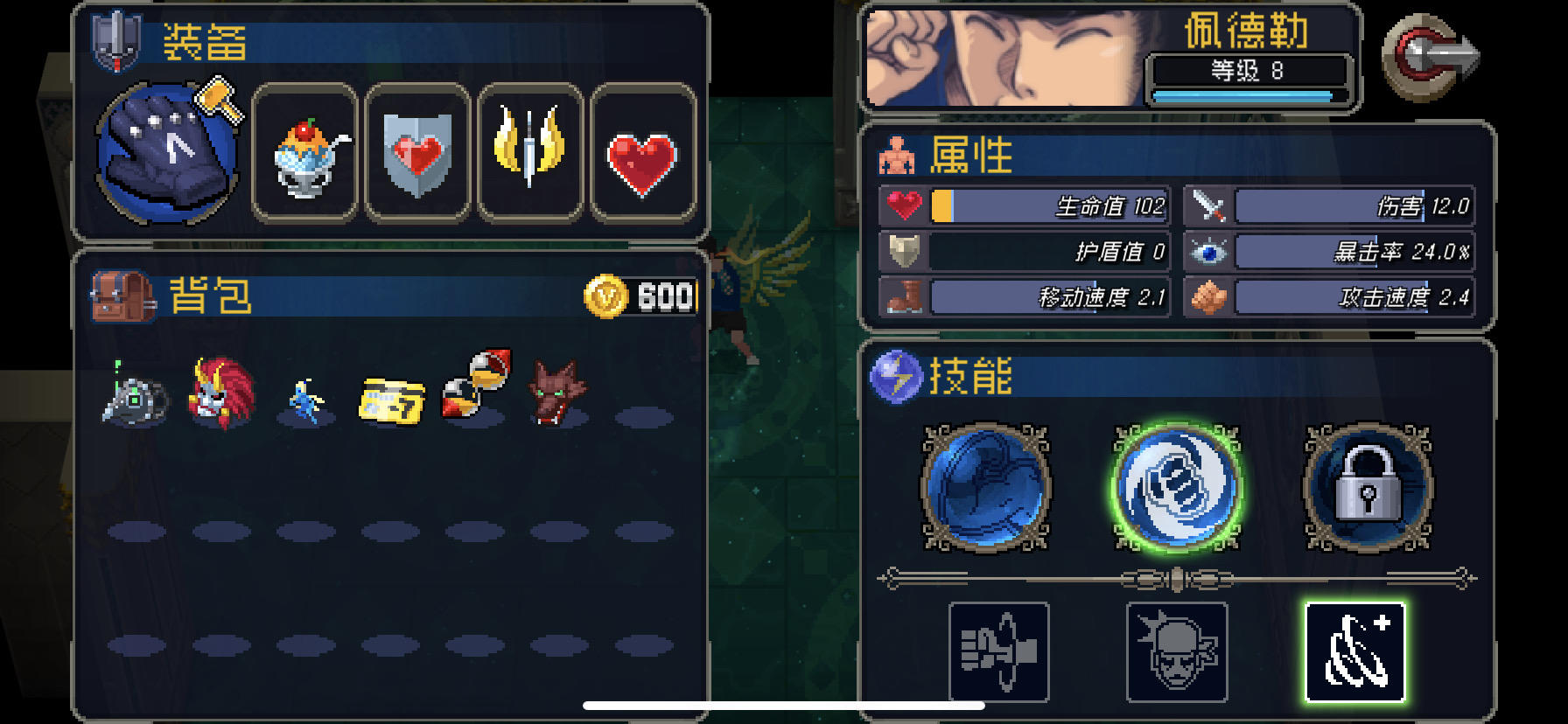首先这个游戏难度不大,作为一款动作类以撒灵活运用道具的组合才是获胜的资本,这里建议优先选择能回血的道具,如普通吸血、暴击回血、去掉护盾变血量还自动回血,然后就防御方面,每过一段时间霸体的金甲很有用可以让你免受很多BOSS的一套连极大的回避大额伤害,然后就是天狗屎的免伤也会取消本次伤害的硬值也很有用,组合起来就更好用了,技能方面第一个人物没啥特色就选残像拳打普攻就行(一次攻击更顶3次强!)以上仅供