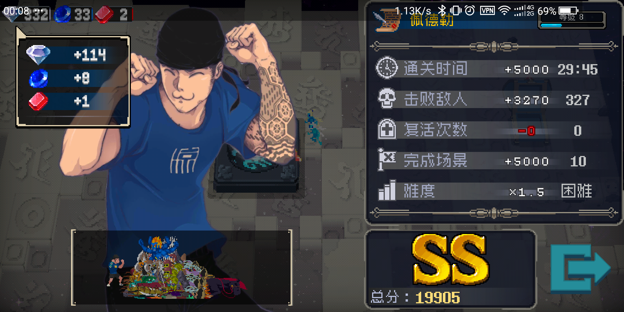 先说说获取途径吧 我买的弓箭手 然后第一层就看见商店老板没好东西 我就恶从胆边生直接一个满蓄力大招给他秒了 后面就不说了没打几关死出来了 然后商店买的蓝拳 蓝拳这人物真的离谱 1级 初始技能 别的啥都没有的情况下 我直接通关 运气超好的得到了 暴击回血 攻击回血 合成个暴击积累层数然后暴击打伤害的刀 武器自带加攻速的肾上腺素跟一个没用的史莱姆 我把史莱姆换成了分身镜子 然后升级武器多个火球术 最后