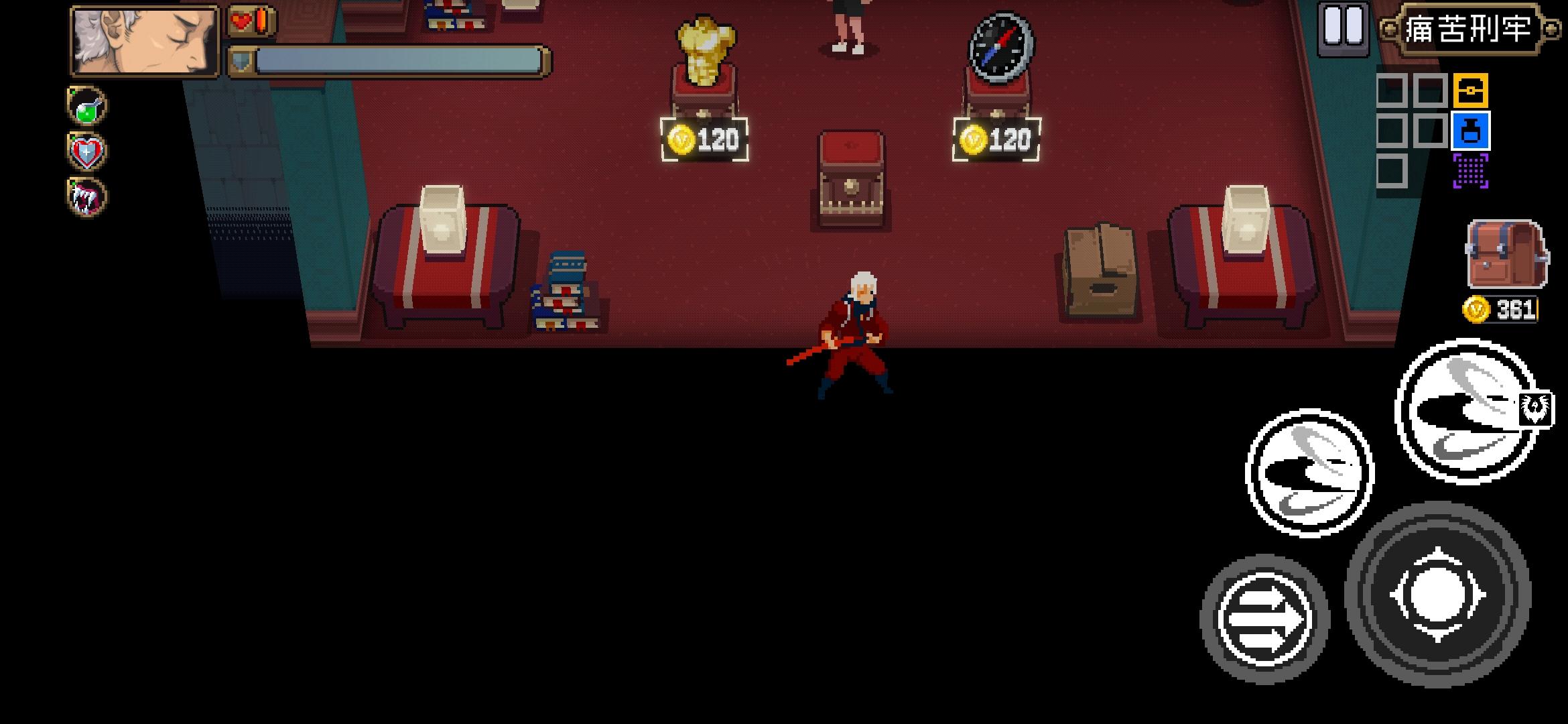 咳咳,之前装了一个河豚,一个道具,在你周围转的,可以造成伤害。然后我去蹭了两下商店老板,居然有伤害,让你又蹭了两下,然后他一套组合拳+无影步打的我掉半条命。不过我可以跑去其他场景他不能跟过来,就这样刷一下盾,又进去蹭他两下,然后他就死了。。。。。。(并获得一个成就,不打不相识)在那以后,我就没看到过他了。。。。