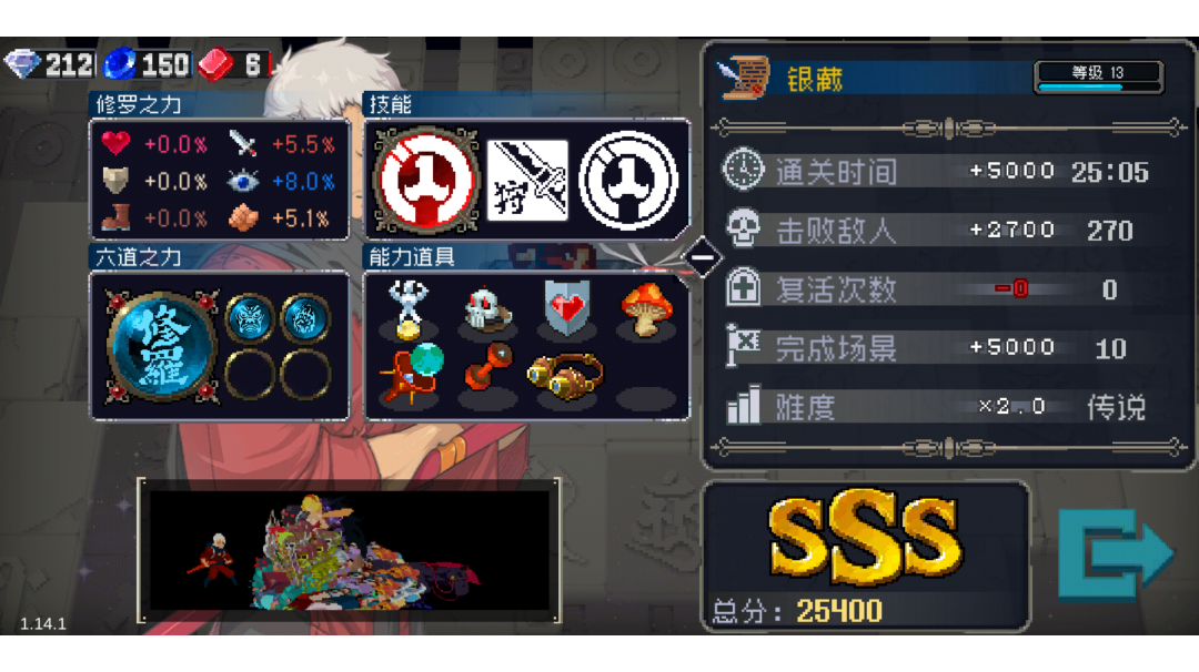 这次有了影分身,效果更是强大,进图我还没动手就完事了(主要动一下费劲😂),修罗完全不用管,带着三个愿望,躲角落摇人就行,钱都没花完就过关了😂