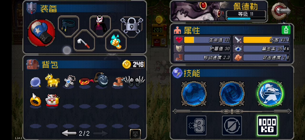 主要道具:精灵王,软体结晶,达摩克里斯大剑,灵魂镣铐,安全帽,云杖附加道具:祭祀刀,太阴圣杯,最后的祭祀,十字架,太阳圣杯主要伤害道具:撬棍,架子鼓其它伤害道具自由搭配