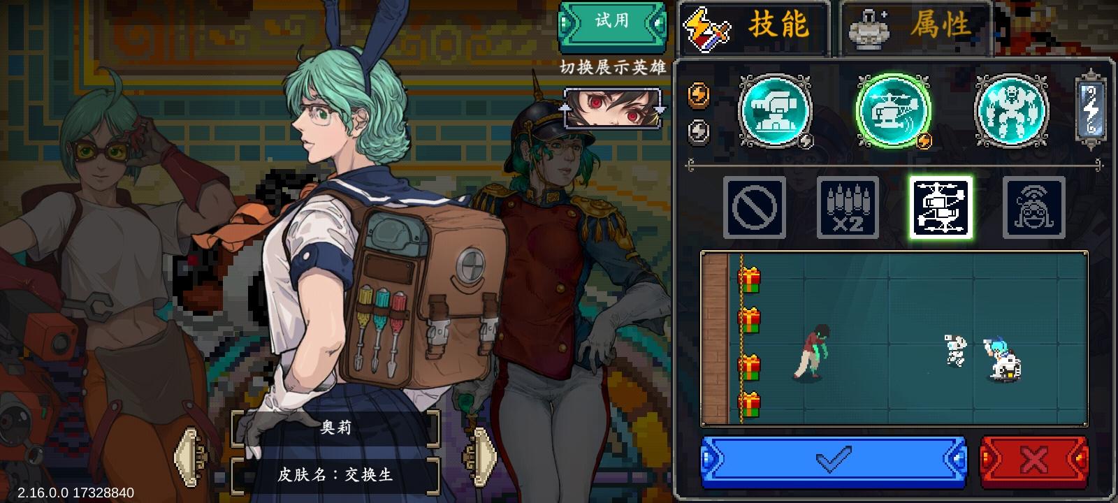 试玩奥莉→切换皮肤。这样会让演示里的掉落零件换位别的皮肤