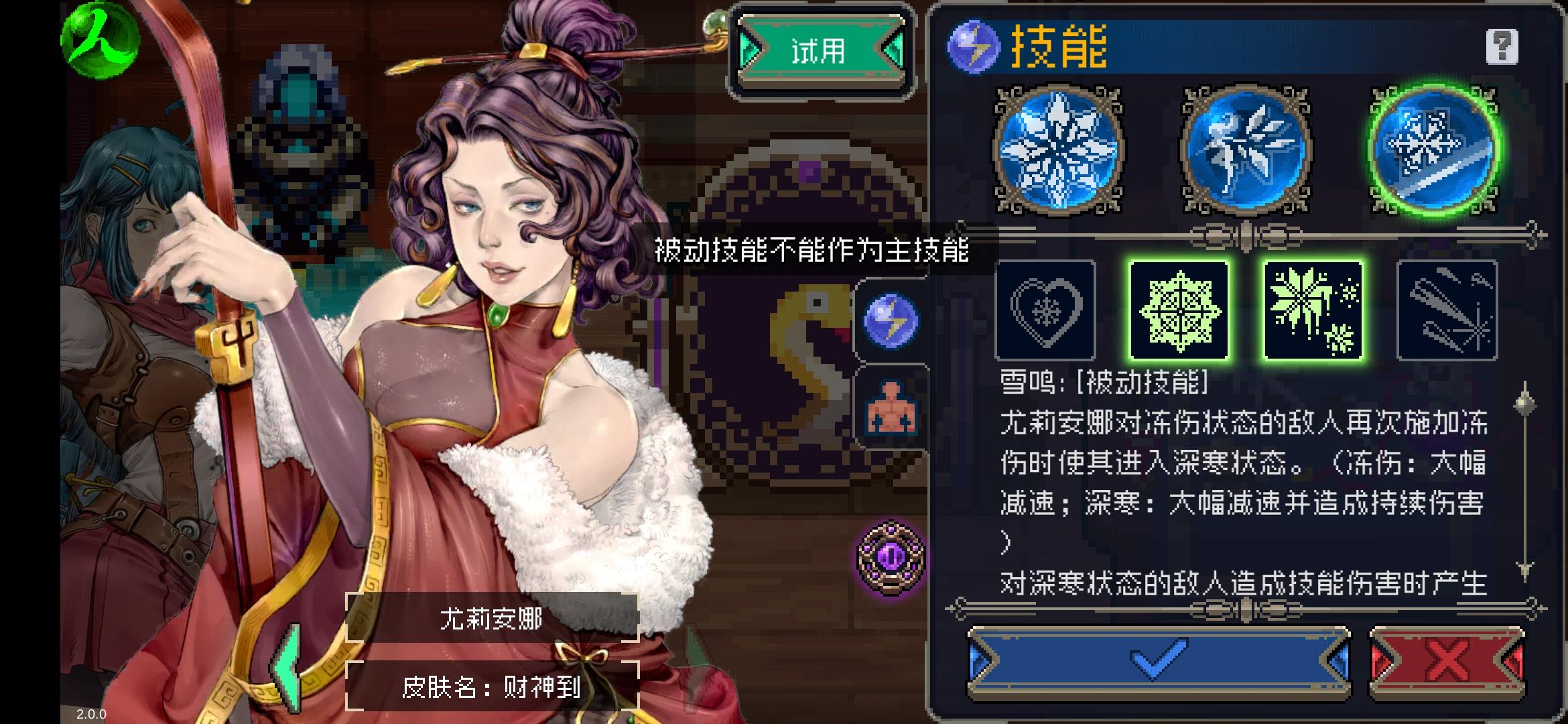 1.试用角色或皮肤场景的木桩,在被打掉之后,换角色或皮肤再进去没有恢复2.鹤瑶、尤莉安娜无法进入试用场景,点击试用键会出现“被动技能不能作为主技能”