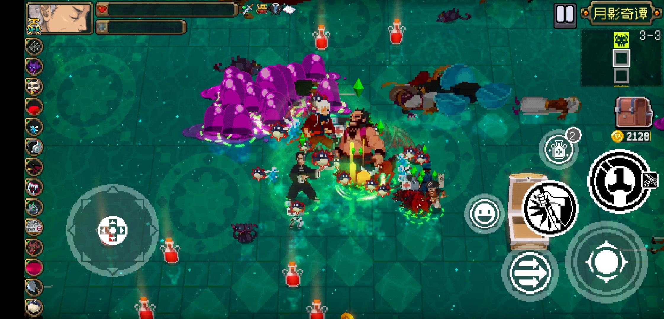 不得不说下这个快乐(疯狂),开了混乱,模式困难,开了玩法,因子有个加普攻伤害但减少技能伤害。视频这个盾量是1100左右,有个镰刀。全靠史莱姆来刷,只要不怕卡,一个小关卡大概能打十几分钟,没有撑到最后,因为被史莱姆淹没在3杠1里。