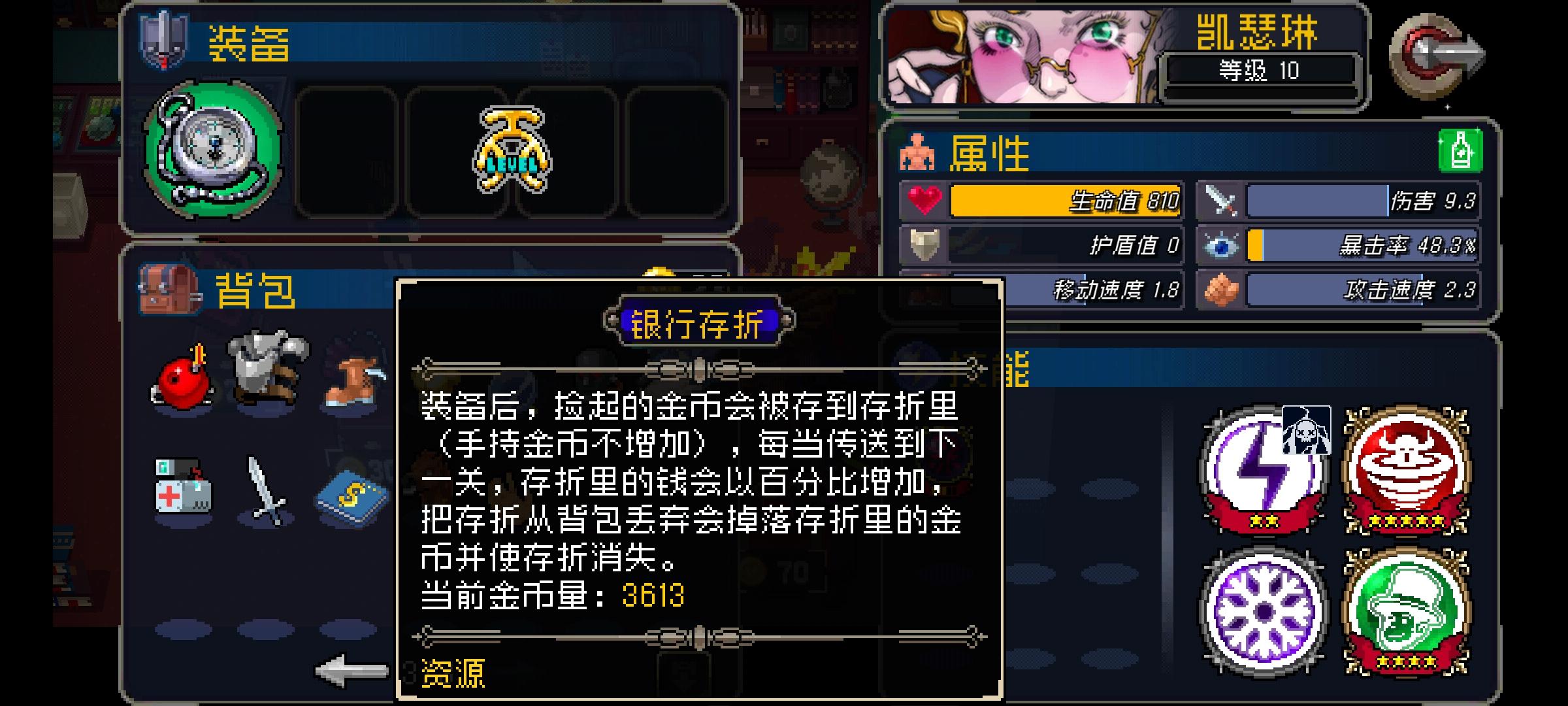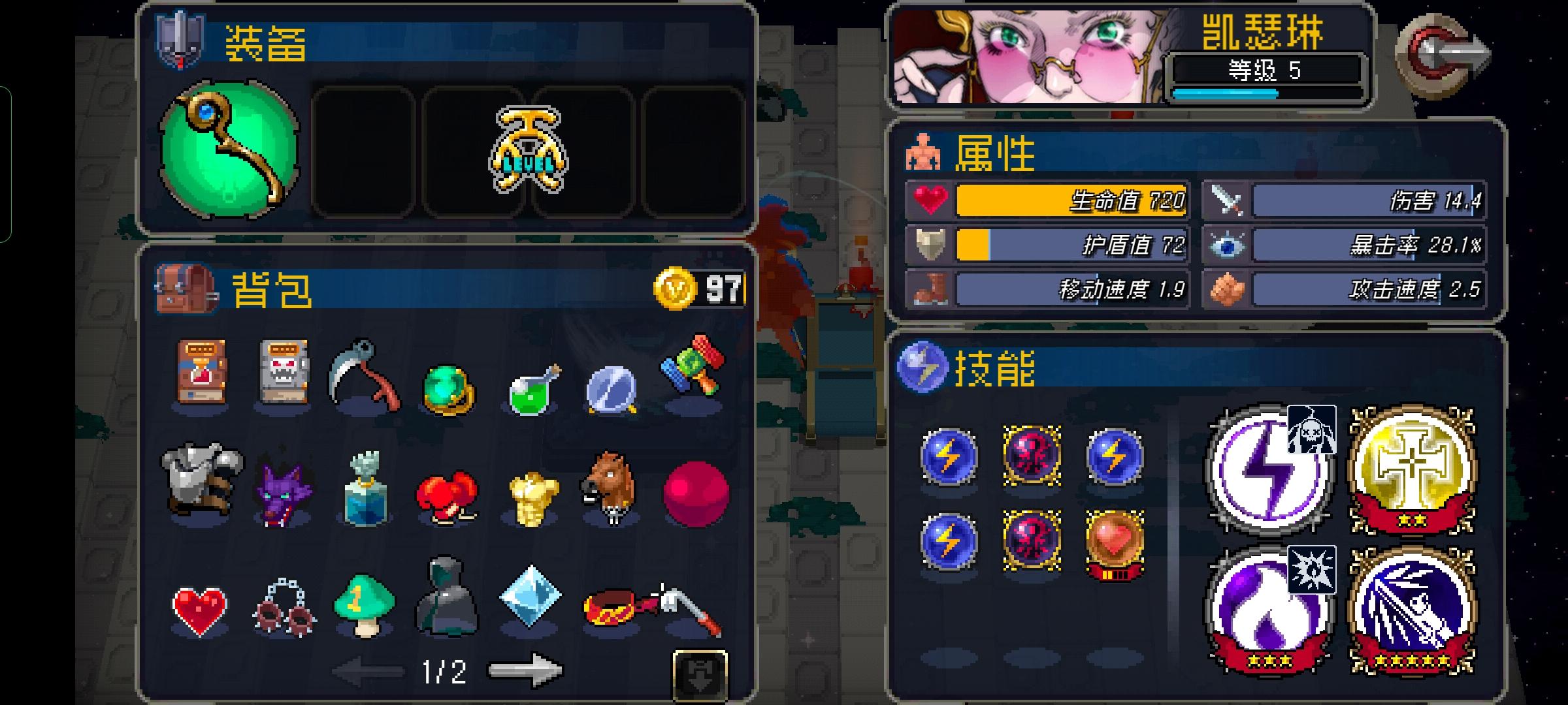 史莱姆戒指+灵魂刀+镰刀+回血牙齿,就是普通模式不太好收集到这四个,有一说一,吊炸天模式真幻境前期能找到的金币是真的少,找不到回血的道具和血瓶差点凉凉。🙃🙃🙃