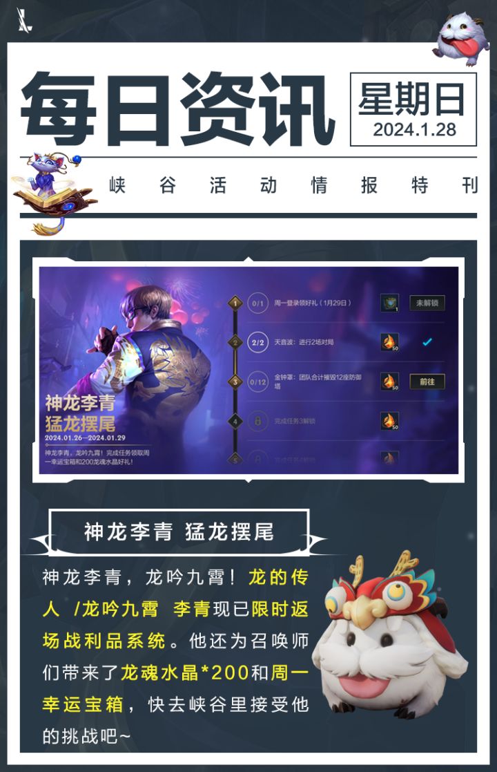 【明日更新】龙王新装备加强龙的传人/龙吟九霄李青皮肤升级返场