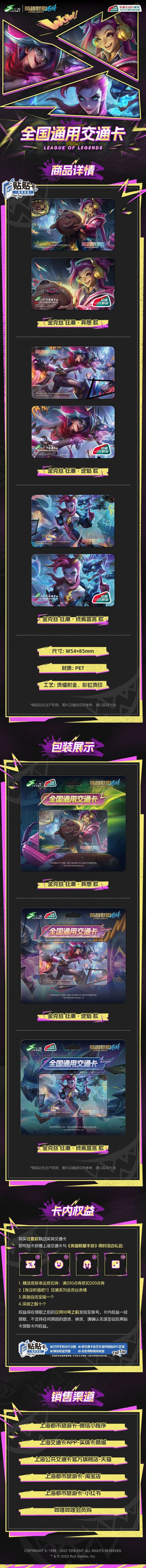 《英雄联盟手游》与上海交通卡联动推出的全国通用交通卡现已正式上线!召唤师购买任意款联动实体交通卡还可贴卡获赠《英雄联盟手游》限时活动礼包,快下滑查看此次售卖详情吧~召唤师即可跳转至购买页面~此外,《英雄联盟手游》金克丝联名手机交通卡虚拟卡面已同步上线~召唤师可从上海、北京、广东、江苏、西安、宁波、长沙、大连、青岛、南昌、成都等地的交通卡APP,进入卡面商城,获取喜爱的卡面!△虚拟卡面△时空