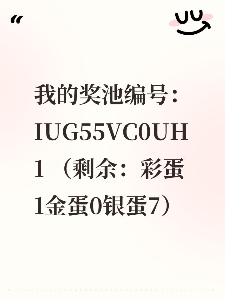 我的奖池编号: IUG55VC0UH1 (剩余:彩蛋1金蛋0银蛋7)