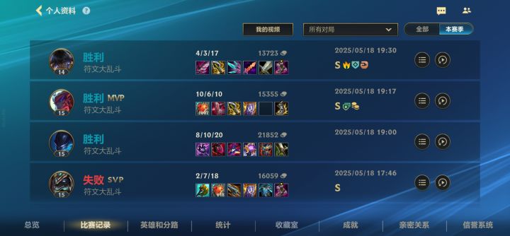 符文大乱斗2.0游戏里一边走一边看战绩面板掉帧严重的一,这个是最难受的,而且那个辅助的治疗体系成型容易,强度还超标,打了二十一把,对面成型四把,我这边成型一把,只要给护盾和治疗就有净化,特别是选个猫挂着,高回复高移速免控制,其他体系一把没成型过,体系里也只描述,效果是啥都没概念,如果其他体系和辅助体系一样变态当我没说,选符文界面也花里胡哨,金色海克斯不了解的还以为是彩色或者白色,而且有些符文效果和
