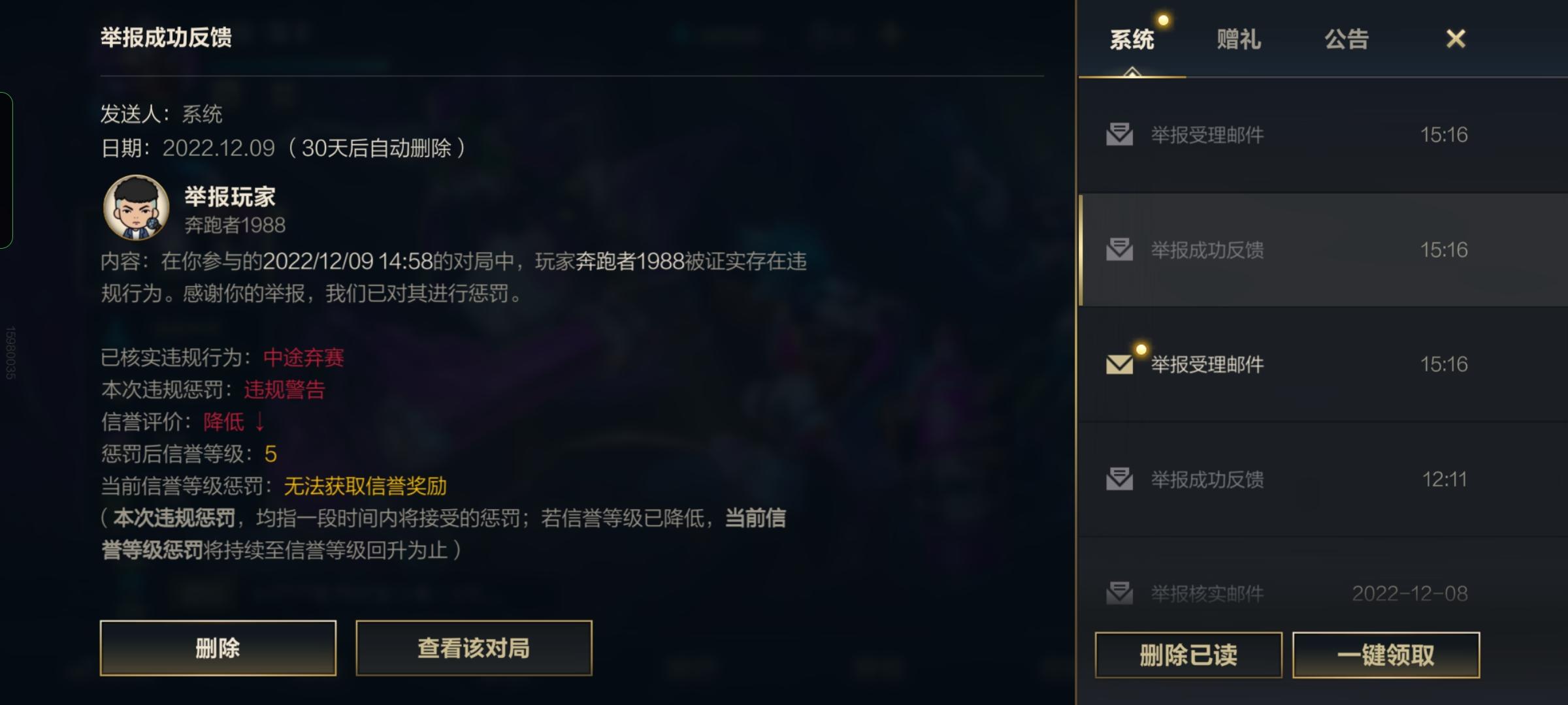 队友拿女枪打野输掉游戏这样可以举报成功吗?