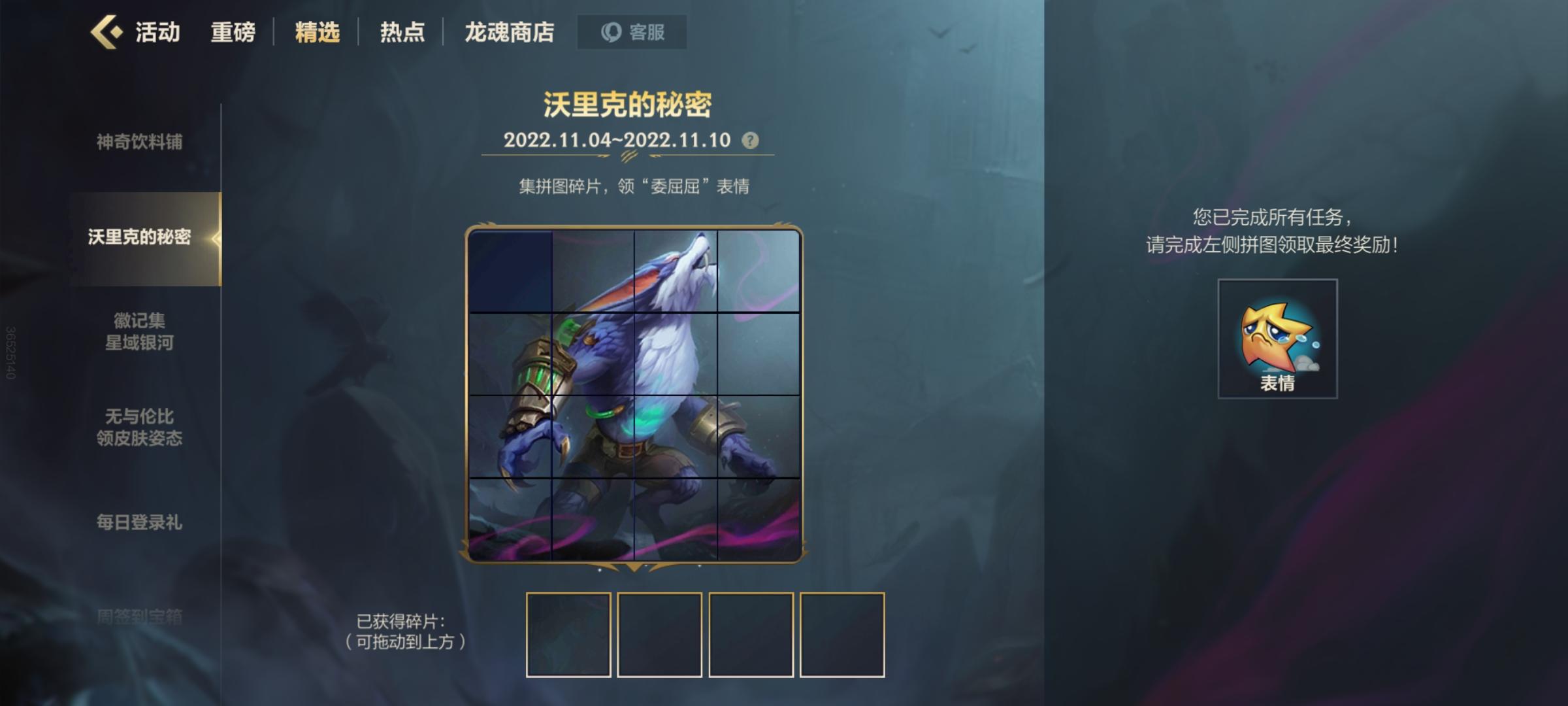 这什么bug?不给领拼图?