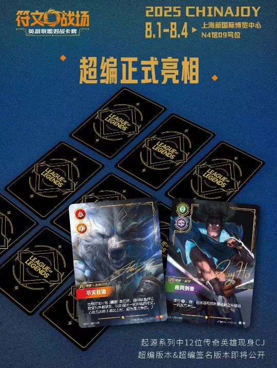 8月1日举行的 2025 ChinaJoy 首日活动中,《符文战场:英雄联盟对战卡牌》在中国地区正式发售!《符文战场:英雄联盟对战卡牌》是由拳头游戏开发的官方实体卡牌游戏,于2025年4月2日正式公布项目名称。该游戏以英雄联盟宇宙为背景,构建了基于符文之地的战略对战体系。在发售现场,游戏制作人跟拳头艺术家还会在现场跟玩家签名互动,官方还会公布全部的超编卡牌,活动、福利。另外,为保障广大玩家的
