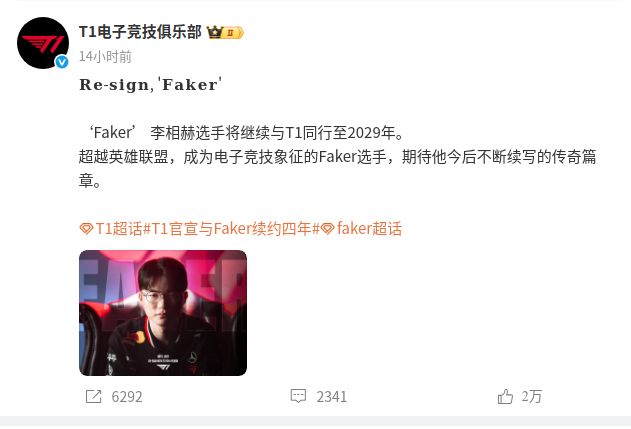 T1 Faker续约至2029!