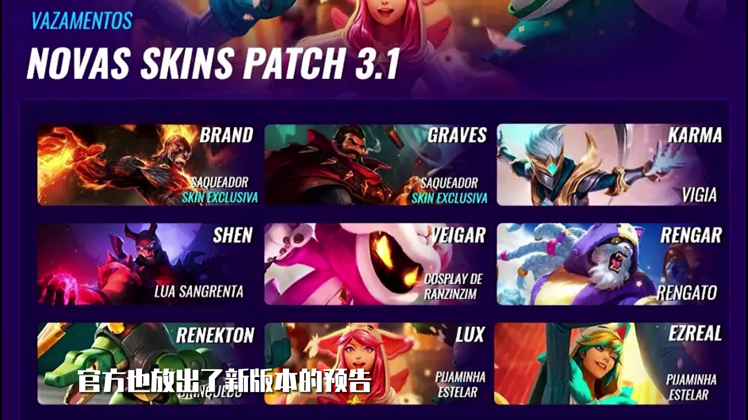 新英雄:暮光之眼 慎,天启者 卡尔玛到来,扇子妈将会有新的大招“甜甜圈”!皮肤&活动:后续会有很多皮肤联动活动,这个版本会有猫狗大战系列,梦境灵探 赛娜、愚人节cos&玩具系列,睡衣守护者等高人气皮肤!装备更新:神圣分离者、破舰者来了!太阳刀等装备也有调整。游戏状态:游戏与英雄的平衡状态、游戏稳定性和延迟问题获得改善,送头、挂机的举报反馈也在不断完善,游戏公平性是我们最最重视的,我们也将持续